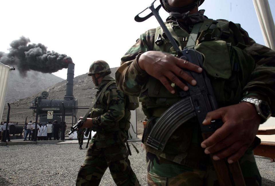 2007年11月8日,安全人员在秘鲁首都利马东郊一处销毁毒品的现场警戒。新华社发