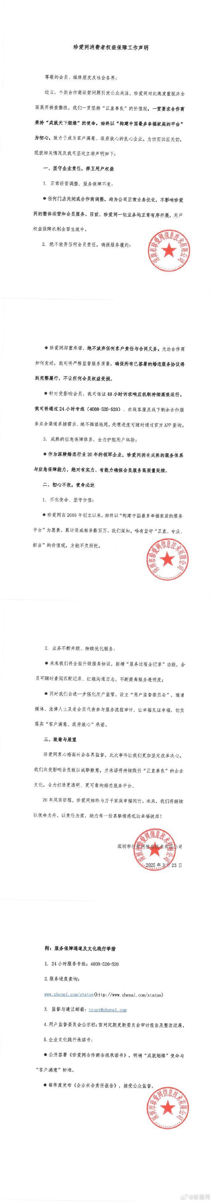 3月24日,珍爱网发布《消费者权益保障工作声明》称,近日,个别合作商运营问题引发公众关注,珍爱网对此高度重视并全面展开核查整改,全文如下: