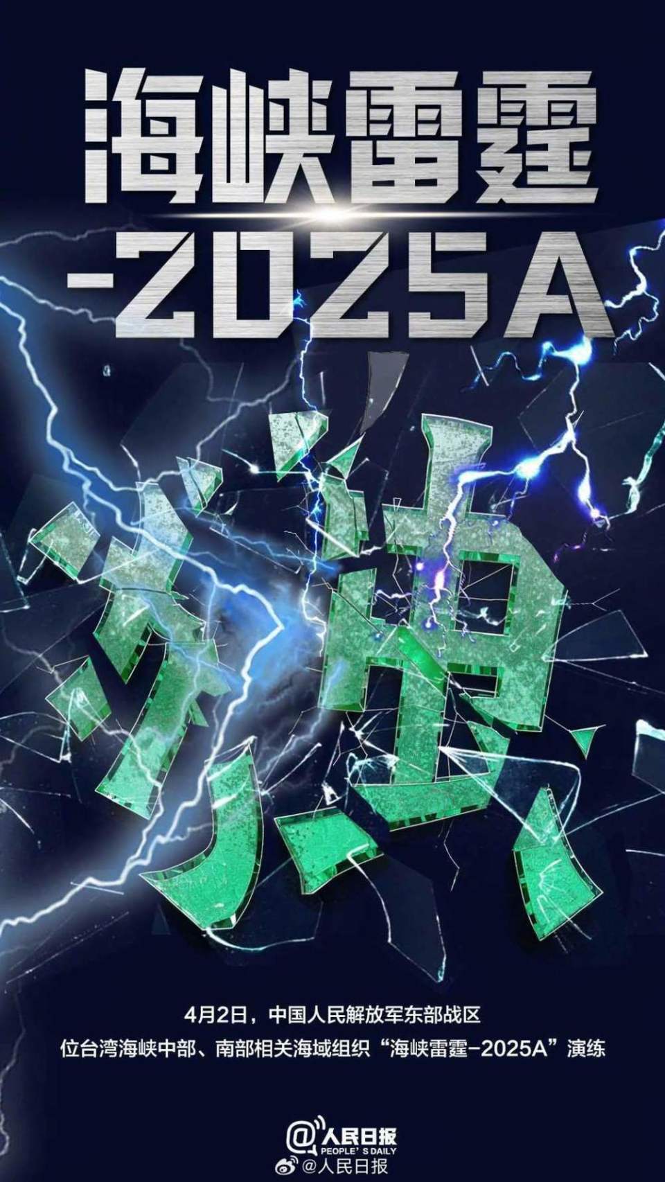 4月2日,中国人民解放军东部战区位台湾海峡中部、南部相关海域组织“海峡雷霆-2025A”演练,宣示捍卫国家主权和领土完整的坚定意志,检验全时待战、随时能战的强大能力。惩戒“台独”不手软,打“独”促统不停步。人民军队利剑高悬随时出鞘,重锤在握雷霆猛击。在人民军队面前,任何分裂图谋都必定失败,任何“台独”挑衅都是死路一条。