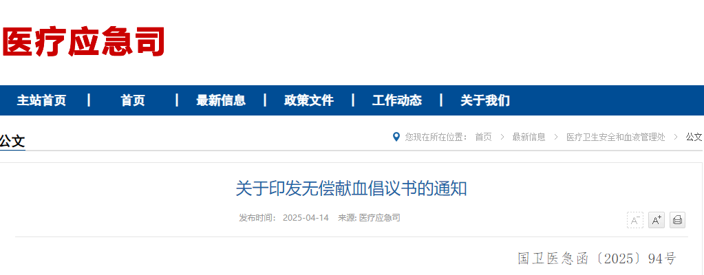 为进一步鼓励社会各界积极参与无偿献血,推进团体无偿献血工作,国家卫生健康委和共青团中央制定了《无偿献血倡议书》,现印发给你们,供参考使用。请做好无偿献血宣传动员工作,按照当地采供血相关计划,加强团体无偿献血组织保障,营造无偿献血良好社会氛围。 国家卫生健康委 共青团中央2025年4月8日