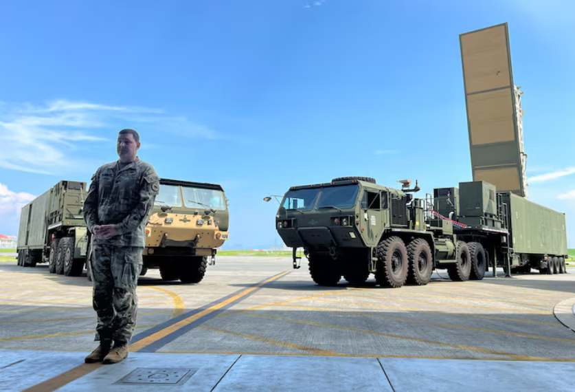 当地时间9月15日,美国军方在日本岩国海军陆战队航空站首次公开展示“堤丰”陆基中导系统。图源:环球网
