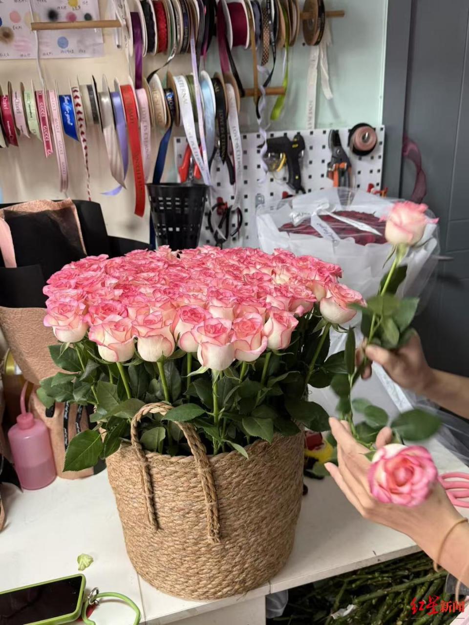 花店同样迎来订单高峰。记者走访成都多家花店了解到,玫瑰花依然是“七夕主角”。