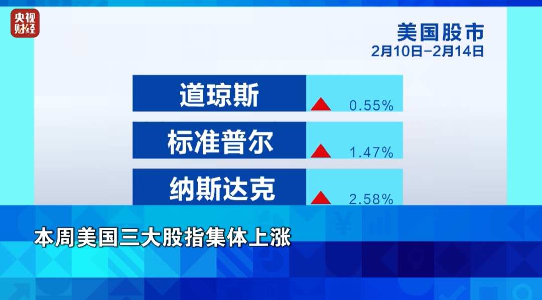 从全周来看,美国总统特朗普没有立即实施此前主张的一系列加征关税措施,缓解了投资者紧张情绪,加之本周公布的通胀数据,暗示美联储密切追踪的个人消费支出价格指数在1月份可能有所回落,部分提振了市场风险偏好,美国三大股指本周集体上涨。其中,道指上涨0.55%,标普500指数上涨1.47%,纳指上涨2.58%。