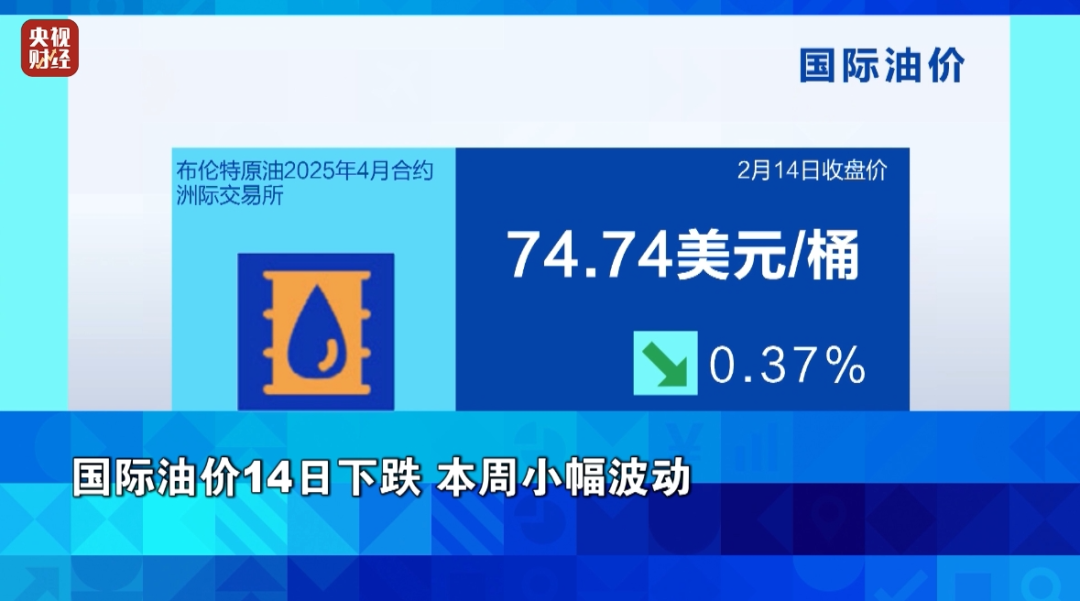 原油期货方面,东欧地缘冲突出现缓和迹象,多方推动俄乌和平谈判,市场预计,如果针对俄罗斯石油行业的制裁未来逐步取消,俄罗斯原油恢复出口将增加全球市场供给,国际油价周五下跌。截至收盘,纽约商品交易所3月交货的轻质原油期货价格收于每桶70.74美元,跌幅为0.77%;4月交货的伦敦布伦特原油期货价格收于每桶74.74美元,跌幅为0.37%。本周,受美国政府拟加征关税、美联储主席鲍威尔国会听证会上释放“鹰派”信号以及美国商业原油库存增加等因素影响,国际油价小幅波动。纽约油价本周下跌0.37%,布伦特油价上涨0.11%。